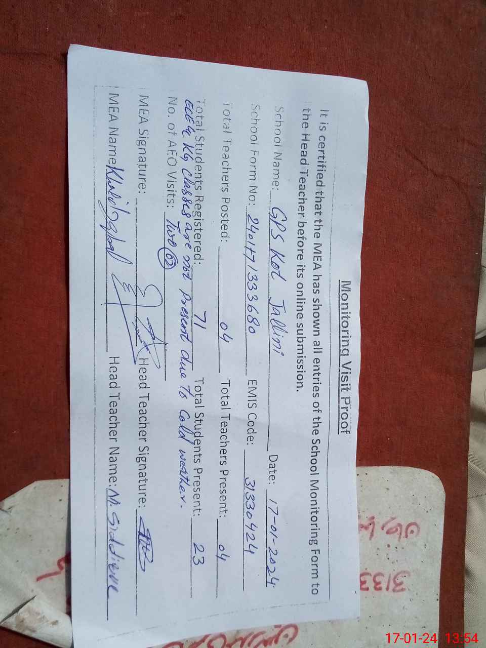 | EMIS Code: 31330424 | Name of School: GPS KOT JAILANI | |||