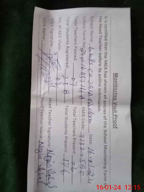 | Certified that this School was Inspected by the Undersigned MEA/DMO Today and the Information Stated Above is as Per Record. | |||||