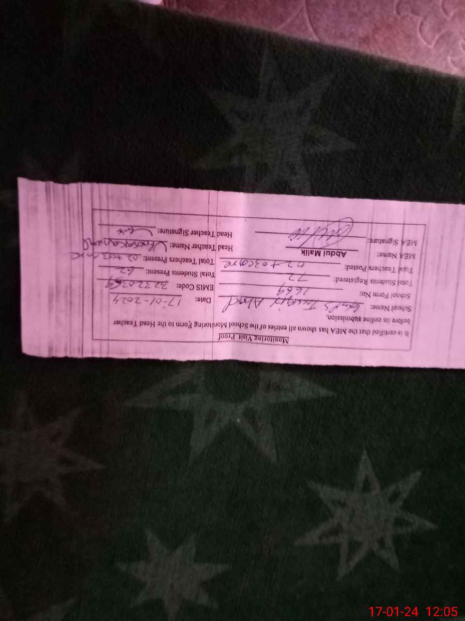 | Name: KA**** BI**** Designation: (School Headmaster's/Headmistress's) PST/PTC/JV Phone/Cell Number: 03**** |
