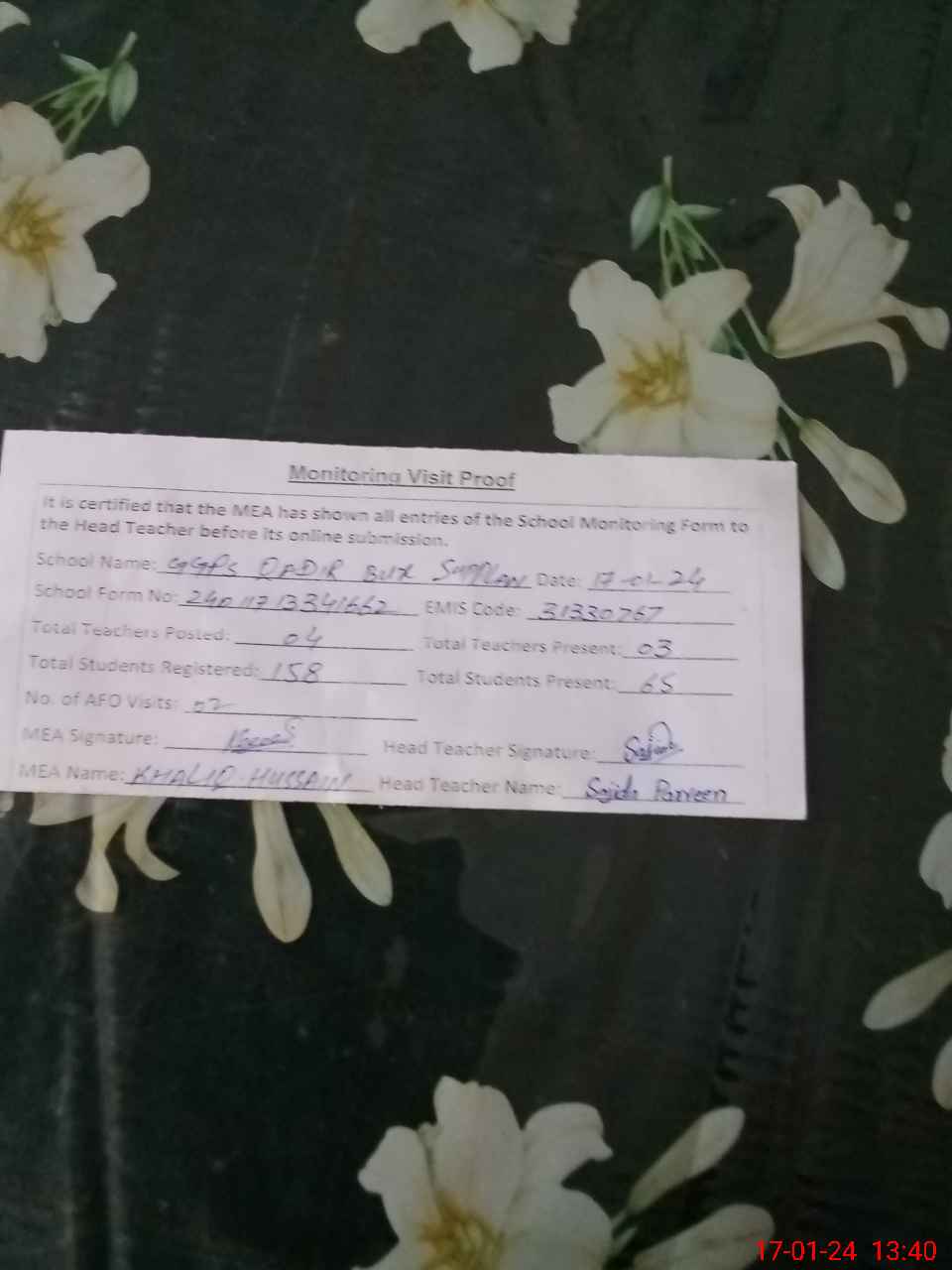 | EMIS Code: 31330767 | Name of School: GGPS QADAR BUX SUPPLAN | |||