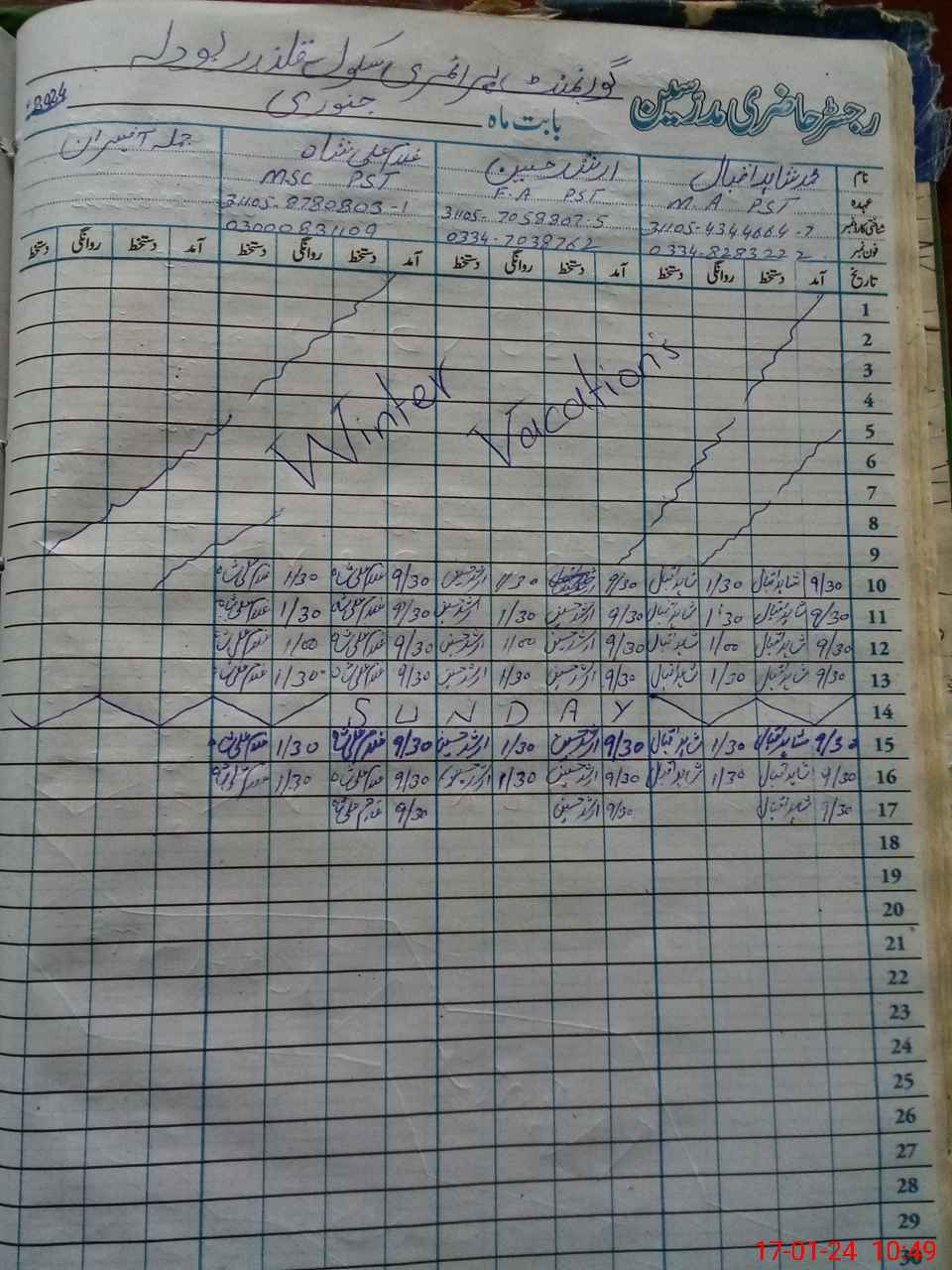 | Name: MU**** Sh**** Iq**** Designation: (School Headmaster's/Headmistress's) PST Phone/Cell Number: 03**** |