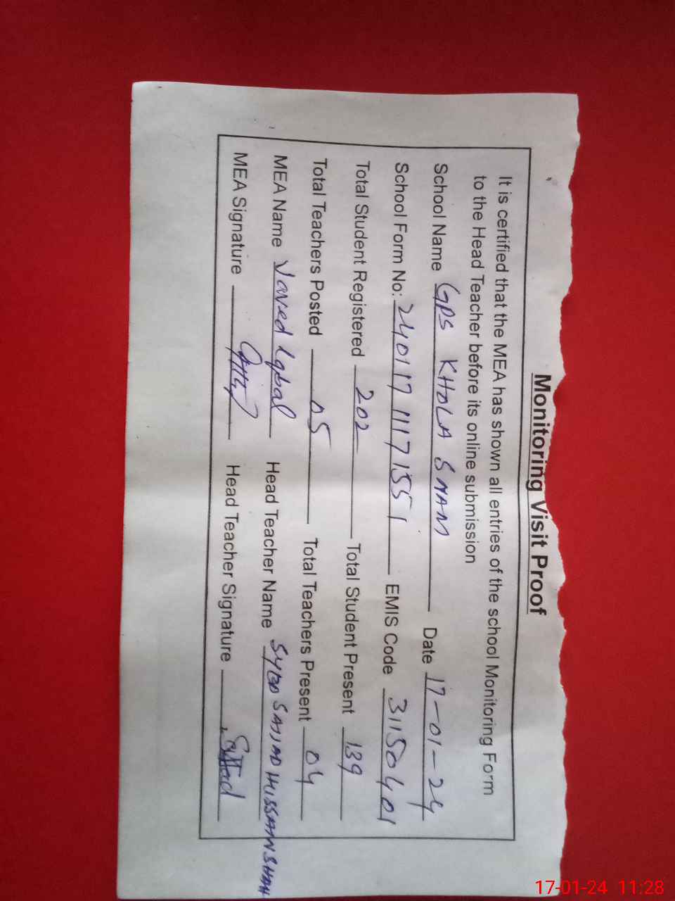 | EMIS Code: 31150401 | Name of School: GPS KHOLA SANAM | |||