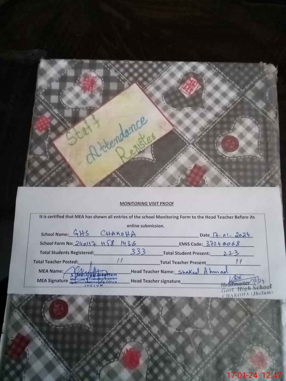 | EMIS Code: 37240068 | Name of School: GHS CHAKOHA | |||