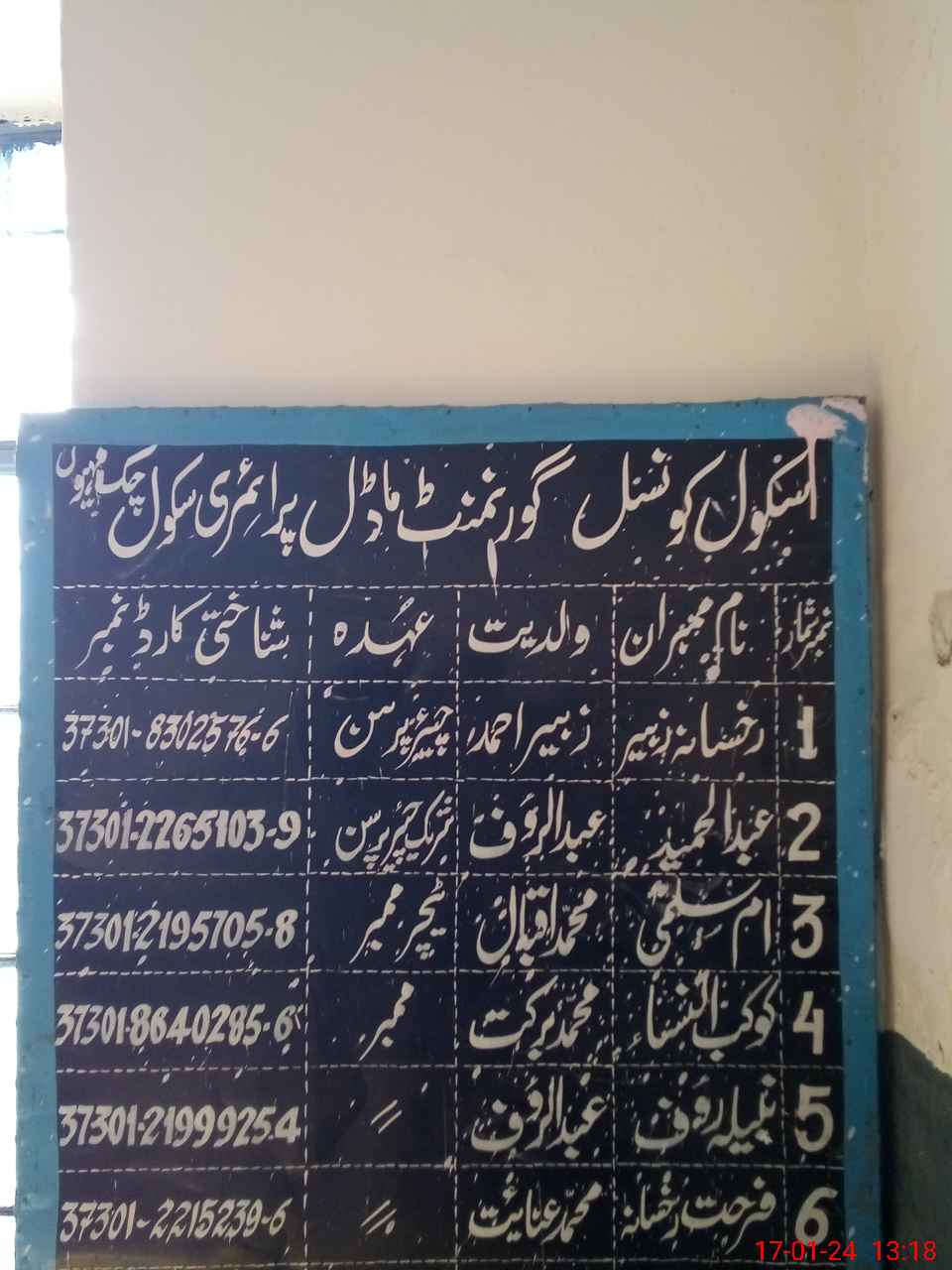 | Total no. of Classrooms: 3 No. of Classrooms Used for Teaching: 3 No. of Classrooms Storing Old Furniture, FTBs, etc: 0Comments if Any: Shaneela Bibi PST is absent unauthorised since 10th Jan School is running in Campus A Campus B is handed over to AEO male Sohan White wash and paint work in progress in school |