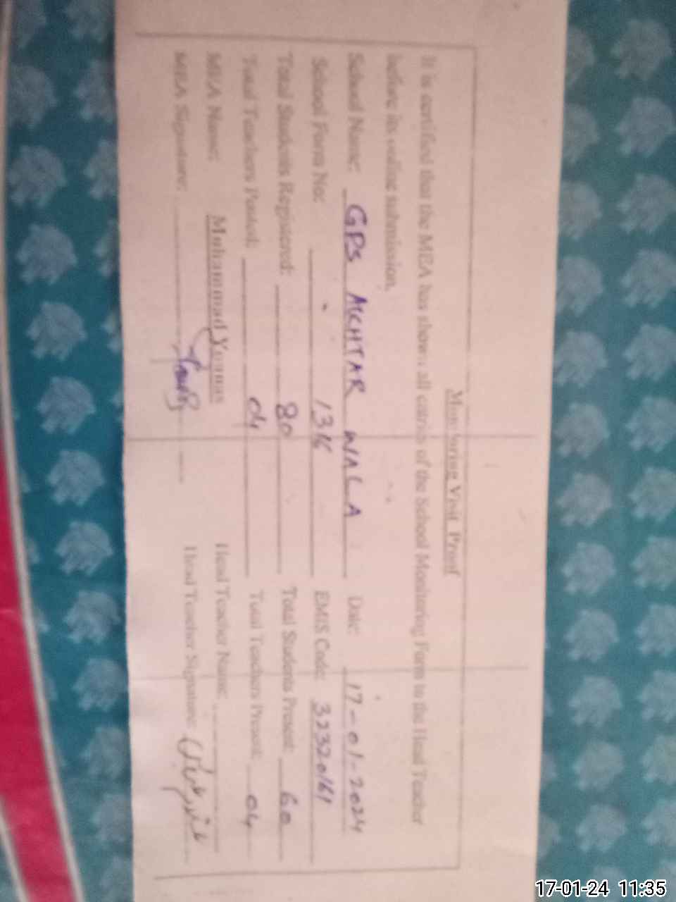 | EMIS Code: 32320161 | Name of School: GPS AKHTER WALA | |||
