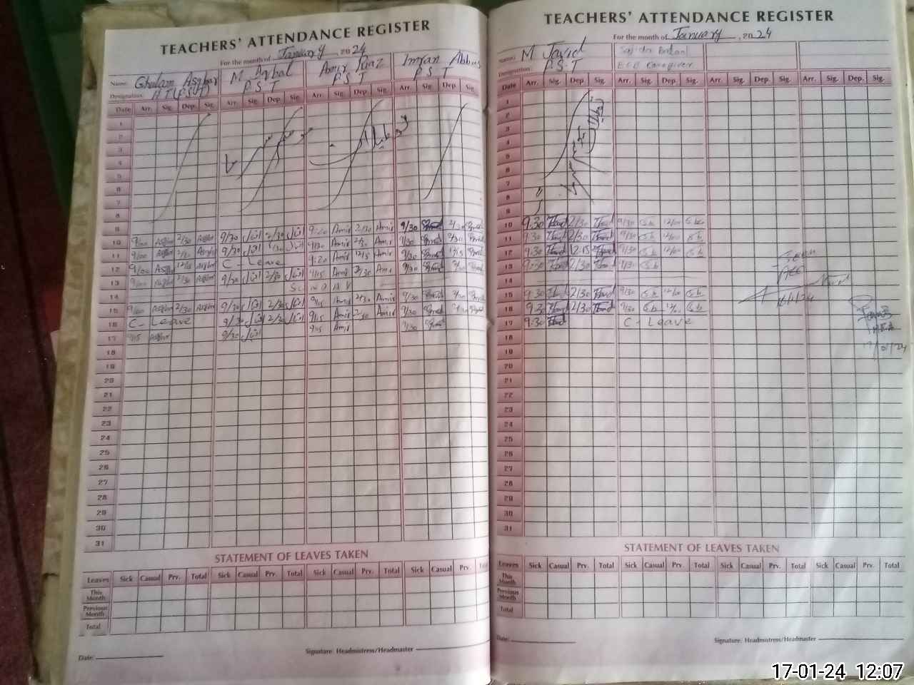 | CNIC | Full Name | Designation | R/C | Absence During Last Calender Month |