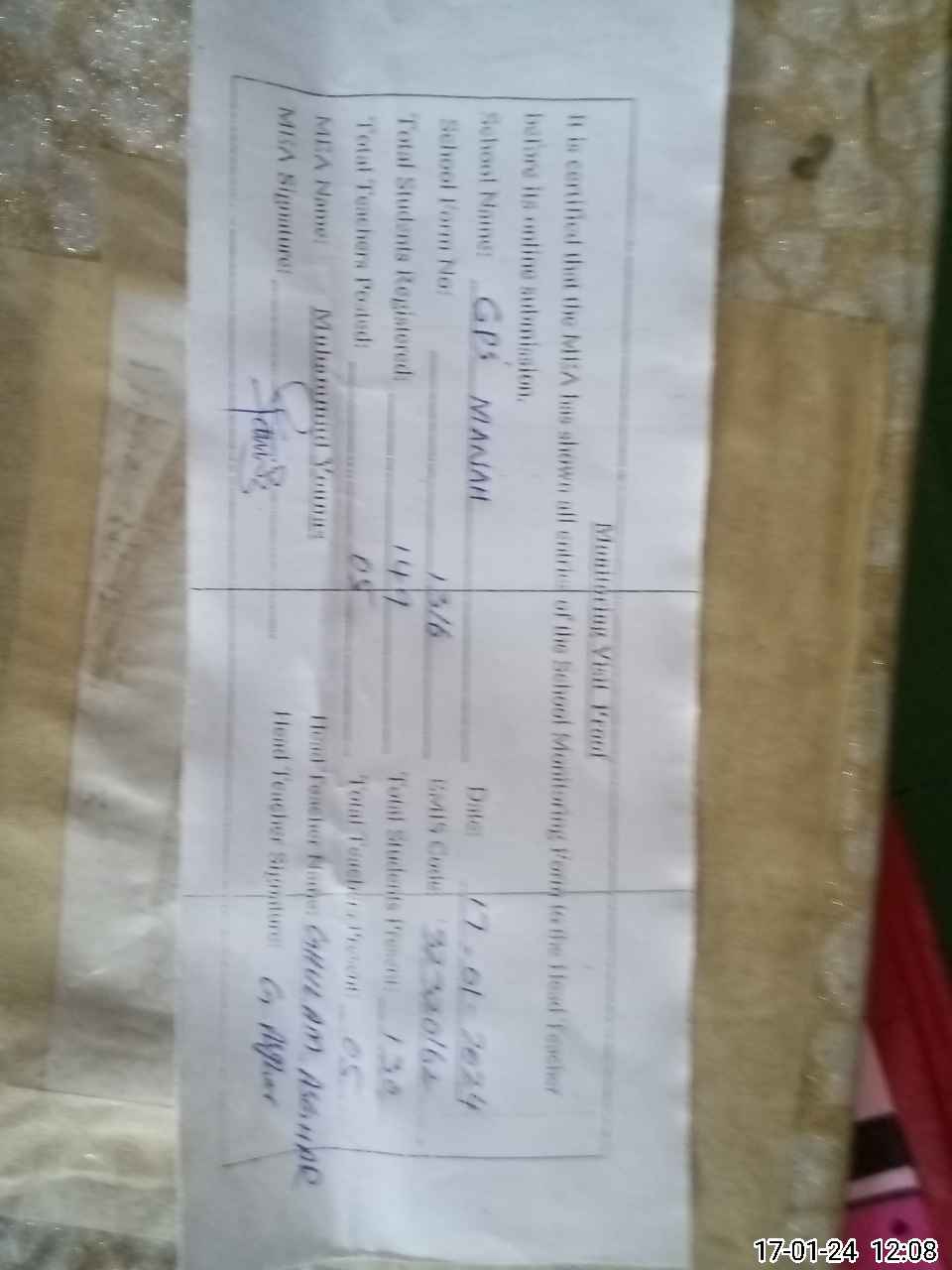 | Name: GAs**** Designation: (School Headmaster's/Headmistress's) Pst Phone/Cell Number: 03**** |