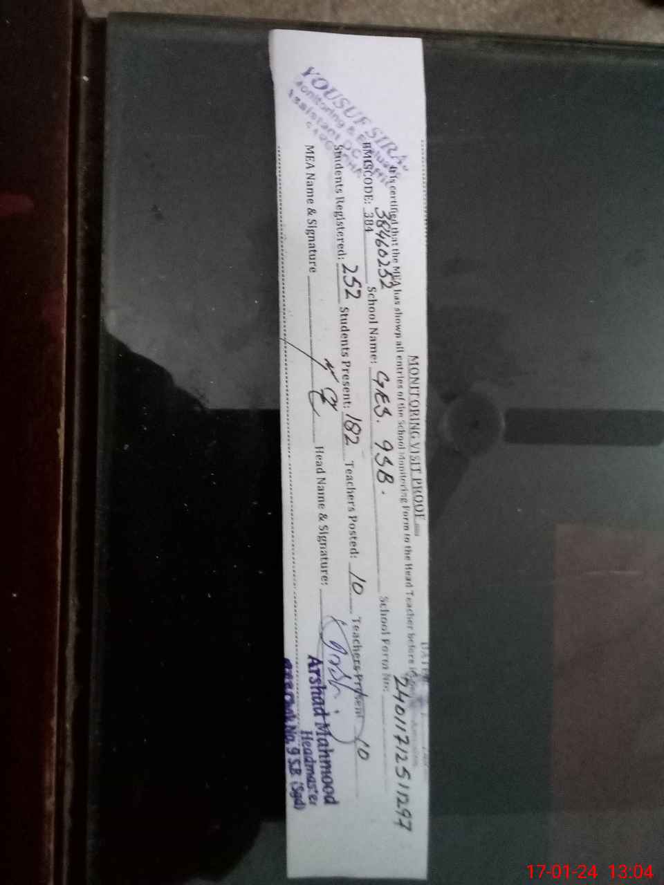 | Certified that this School was Inspected by the Undersigned MEA/DMO Today and the Information Stated Above is as Per Record. | |||||