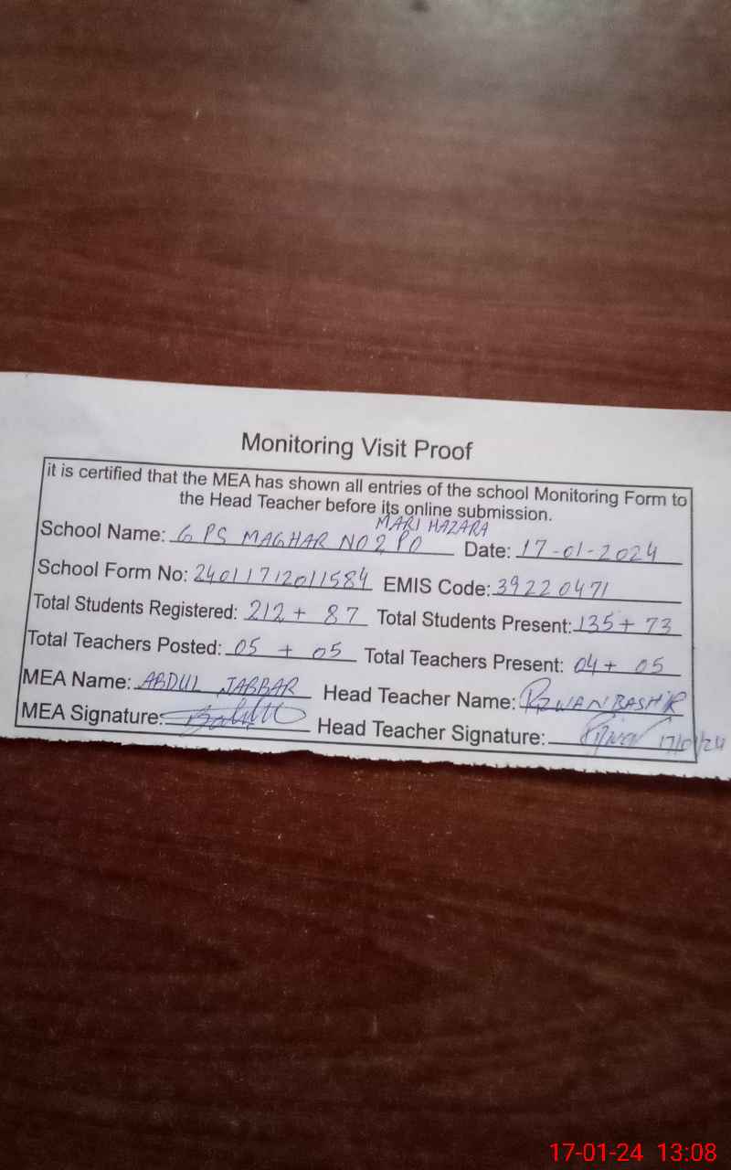| EMIS Code: 39220471 | Name of School: GPS MAGHAR NO. 2 P/O MARI HAZARA | |||