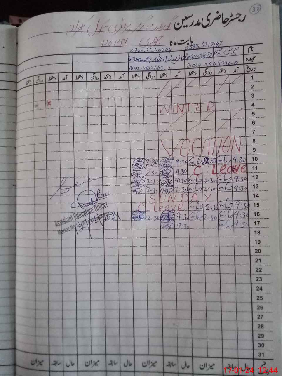 | Name: Me**** Mu**** Designation: (School Headmaster's/Headmistress's) ESE Phone/Cell Number: 03**** |