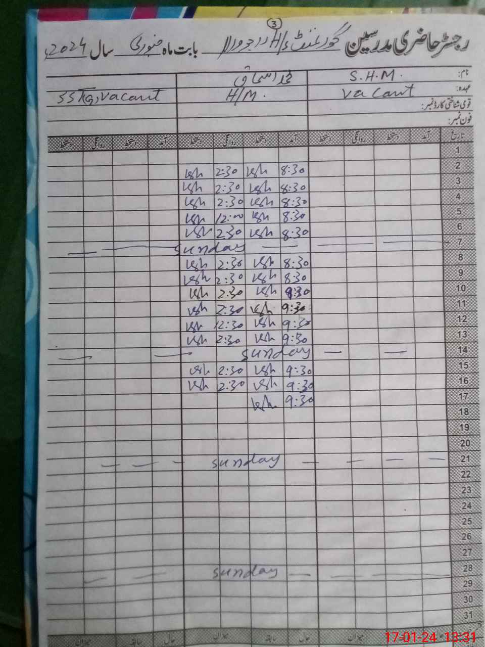 | CNIC | Full Name | Designation | R/C | Absence During Last Calender Month |