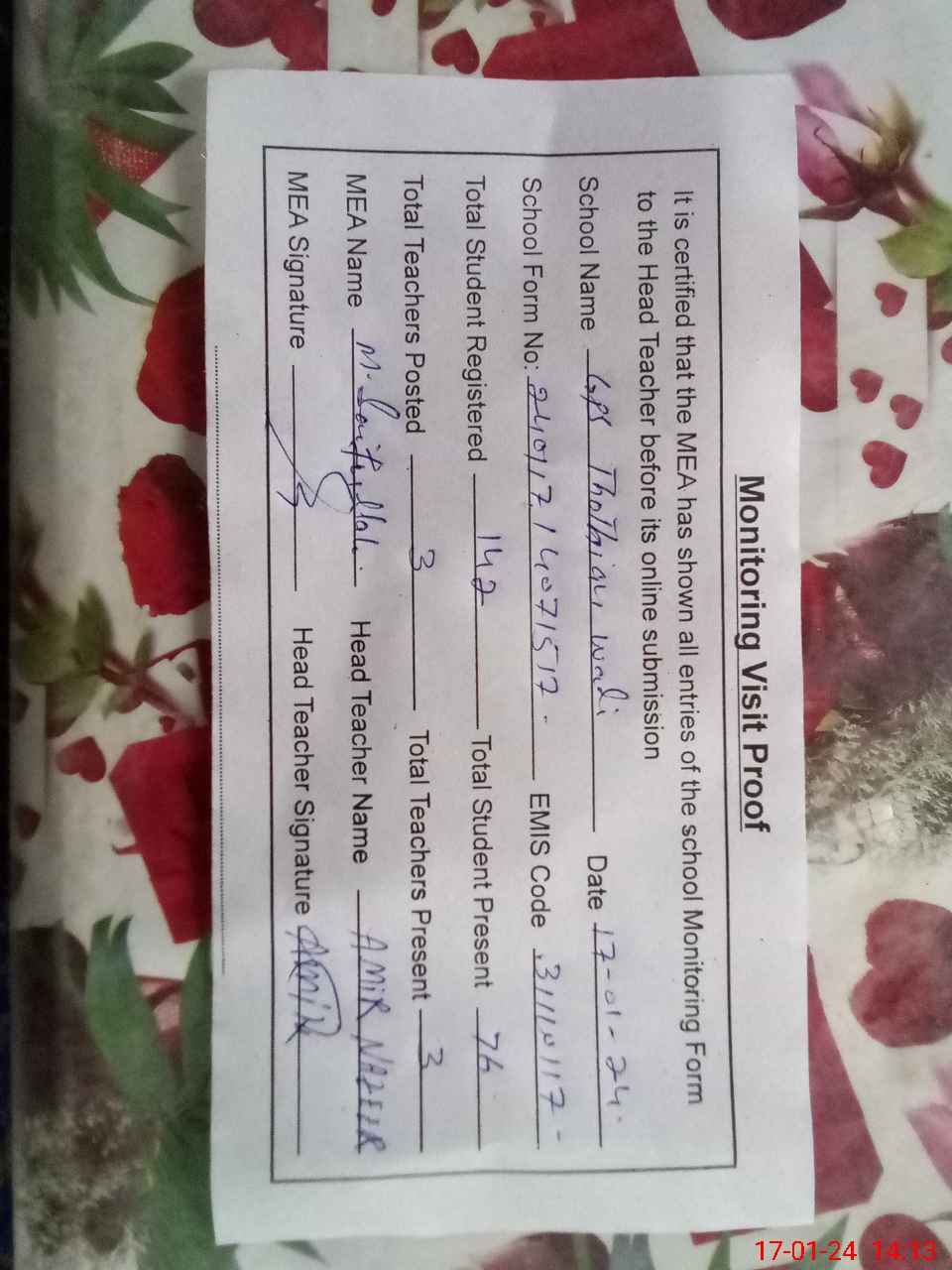 | EMIS Code: 31110117 | Name of School: GPS THOTHIAN WALI | |||