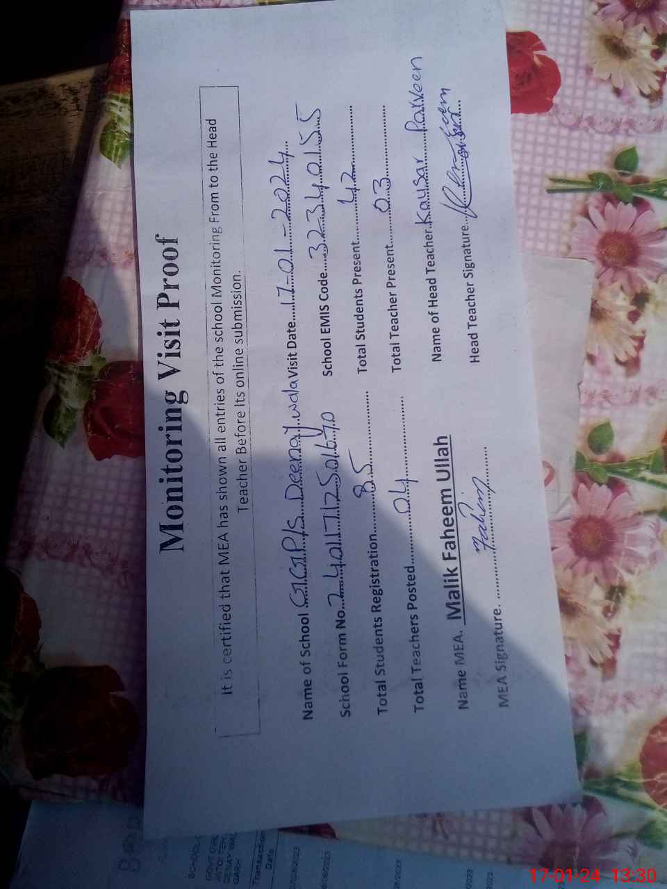 | EMIS Code: 32340155 | Name of School: GGPS DENAY WALA | |||