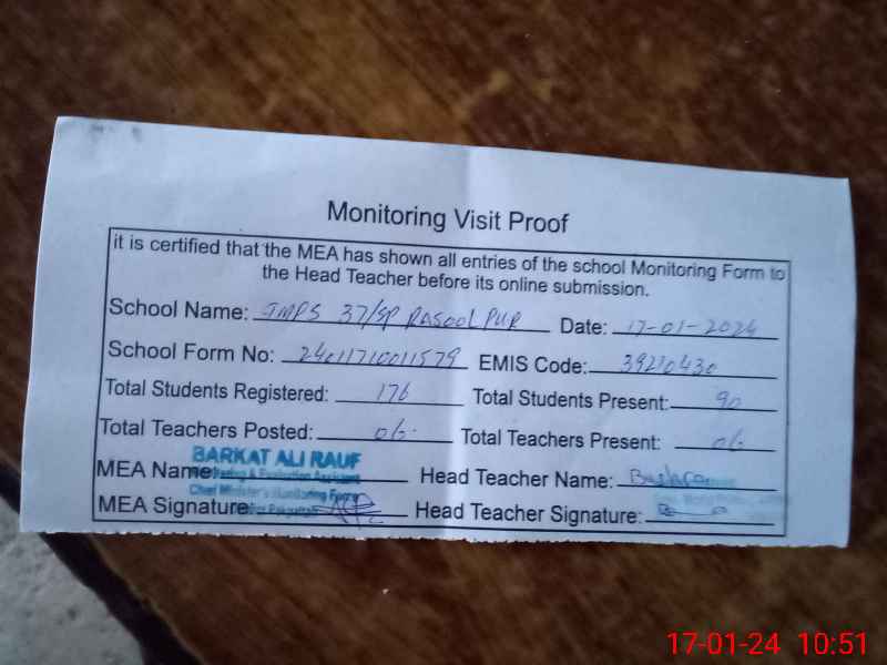 | EMIS Code: 39210430 | Name of School: GMPS CHAK 37/SP RASOOL PUR | |||