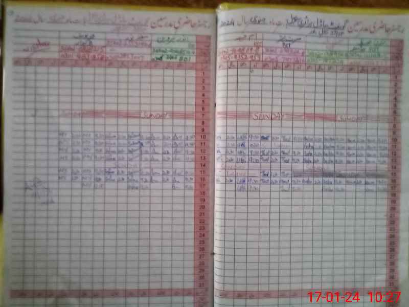 | CNIC | Full Name | Designation | R/C | Absence During Last Calender Month |