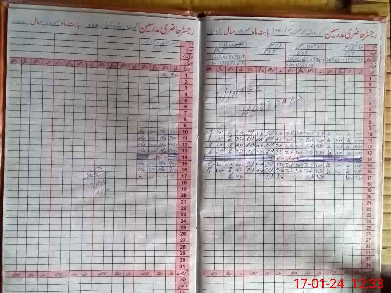 | CNIC | Full Name | Designation | R/C | Absence During Last Calender Month |