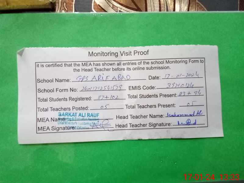 | EMIS Code: 39210124 | Name of School: GPS ARIF ABAD | |||