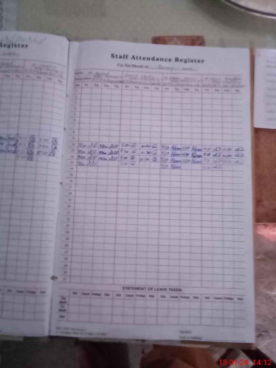 | CNIC | Full Name | Designation | R/C | Absence During Last Calender Month |