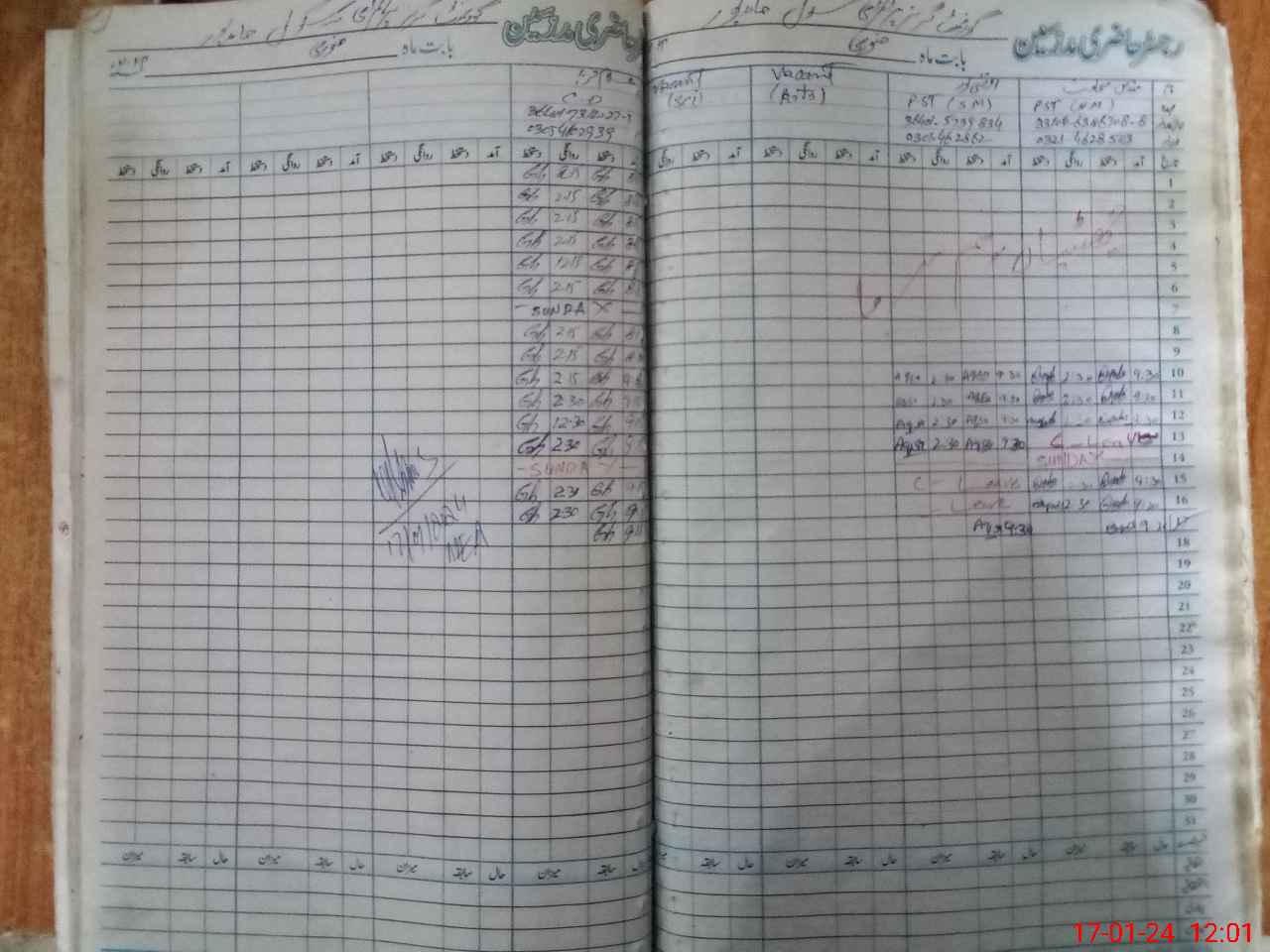 | CNIC | Full Name | Designation | R/C | Absence During Last Calender Month |