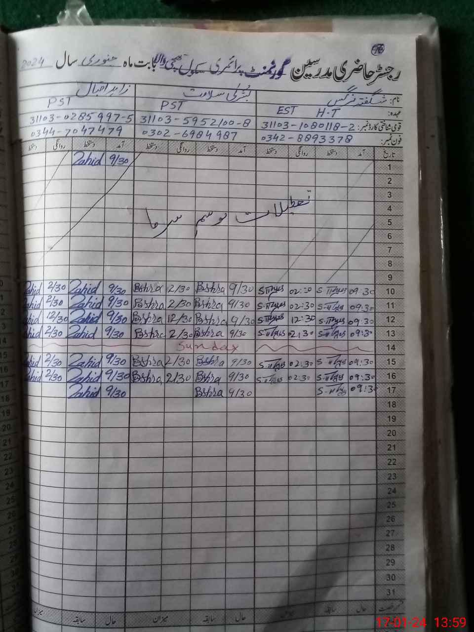 | Name: Su**** Na**** Designation: (School Headmaster's/Headmistress's) EST Phone/Cell Number: 03**** |