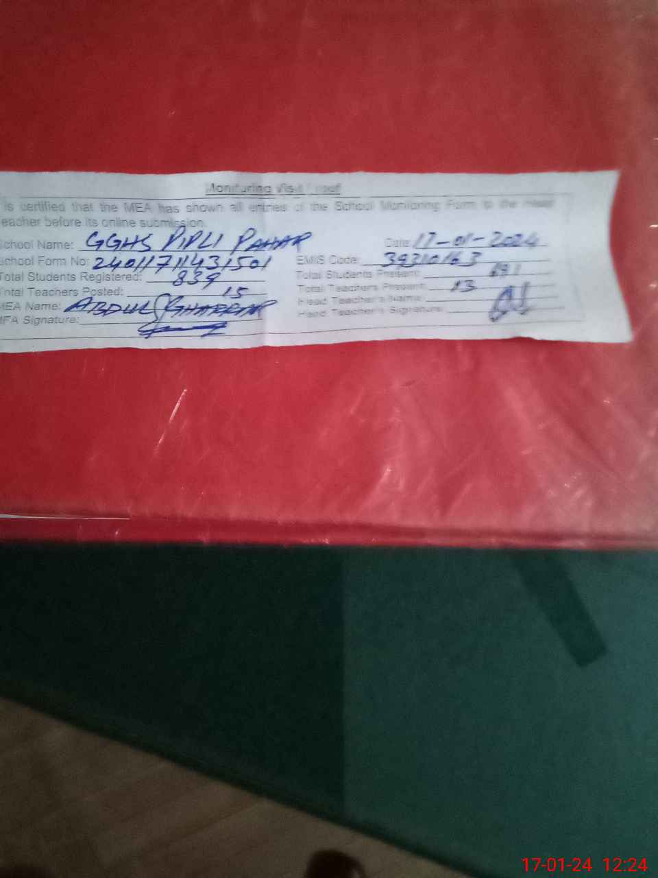 | Attendance Register | Head Teacher | MEA with School | Visit Proof |