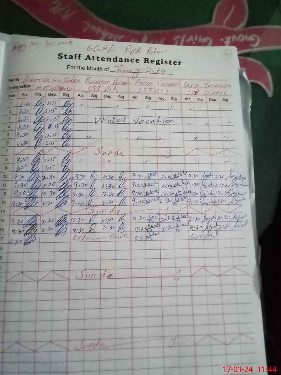 | Monitoring Date: 17-01-2024 | Start Time: 17-01-2024 11:42 AM | End Time: 17-01-2024 12:25 PM | Name of MEA: AB**** GH**** | |