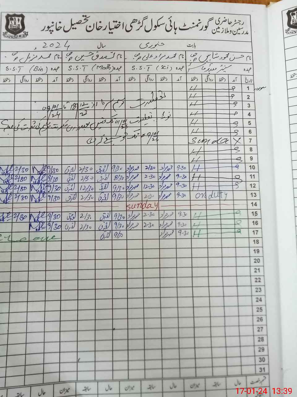 | CNIC | Full Name | Designation | R/C | Absence During Last Calender Month |