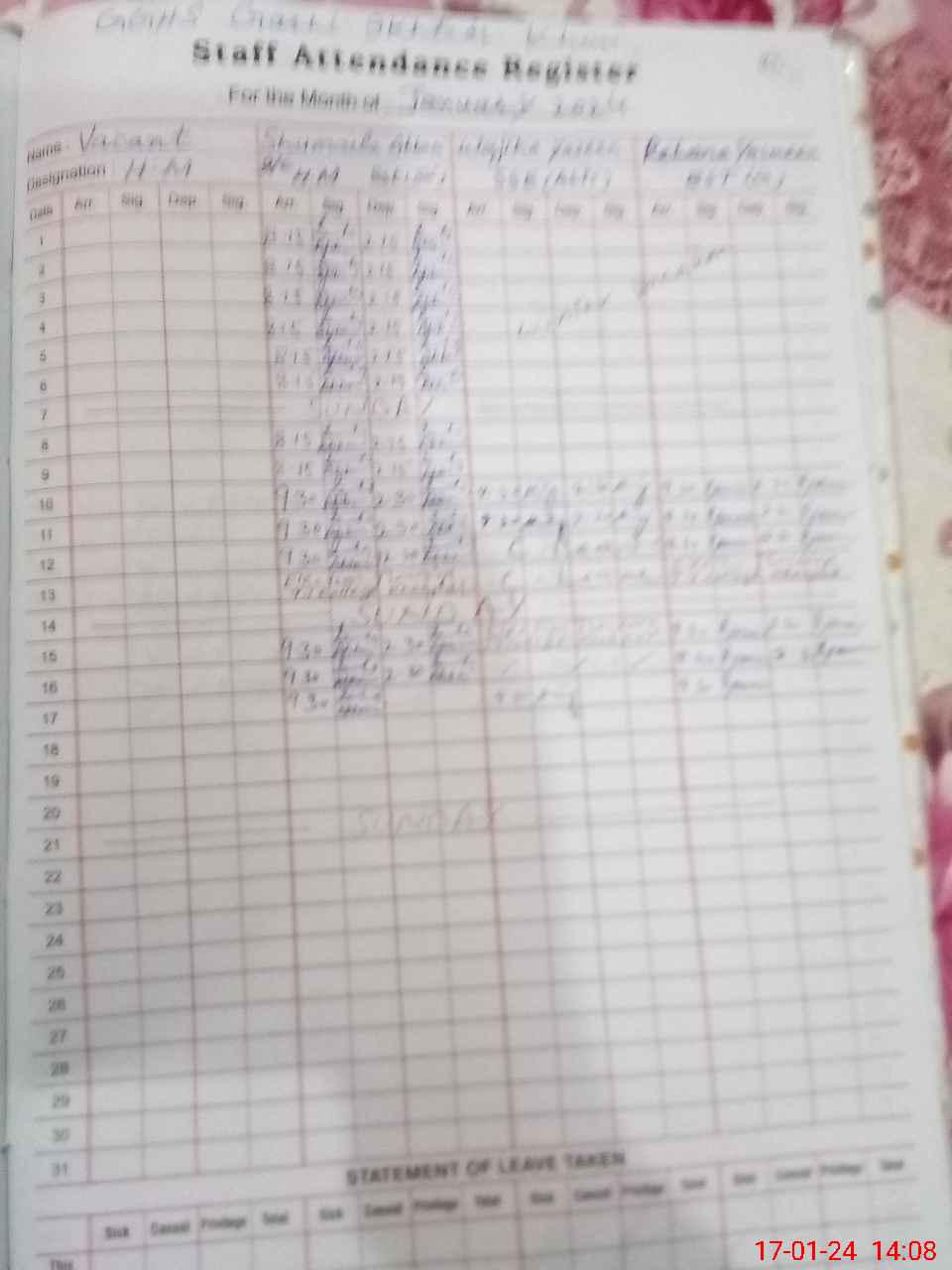 | 31**** | Ra**** Na**** | PST | Regular | 1 | 0 | 0 | 0 | 0 | 0 | 0 | 0 | 1 | Casual |
