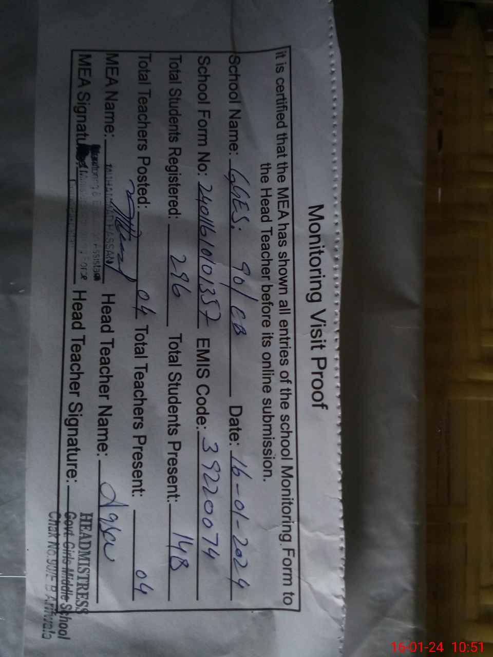 | EMIS Code: 39220074 | Name of School: GGES 90 EB ARIFWALA | |||