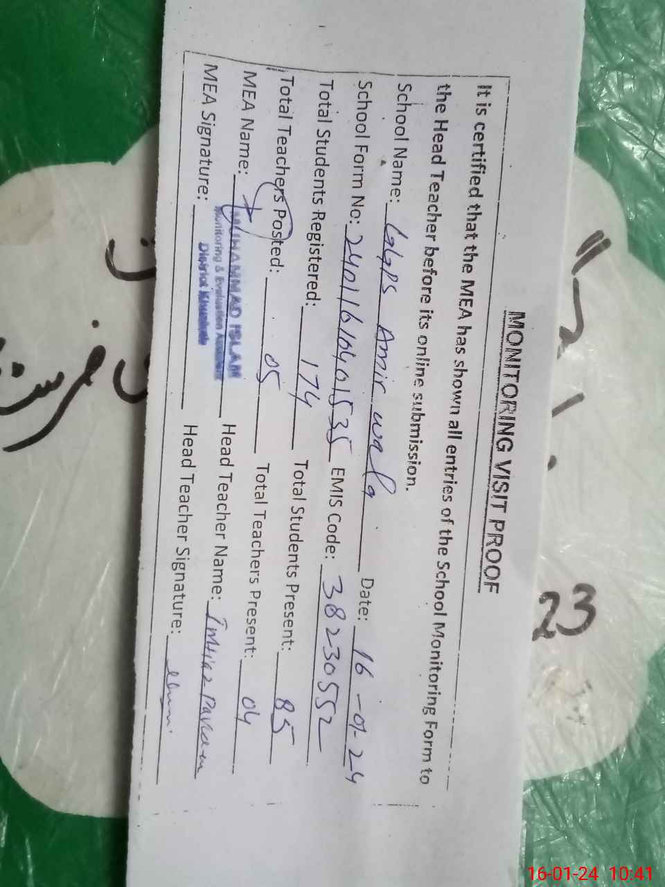 | Name: Im**** pe**** Designation: (School Headmaster's/Headmistress's) pst Phone/Cell Number: 03**** |