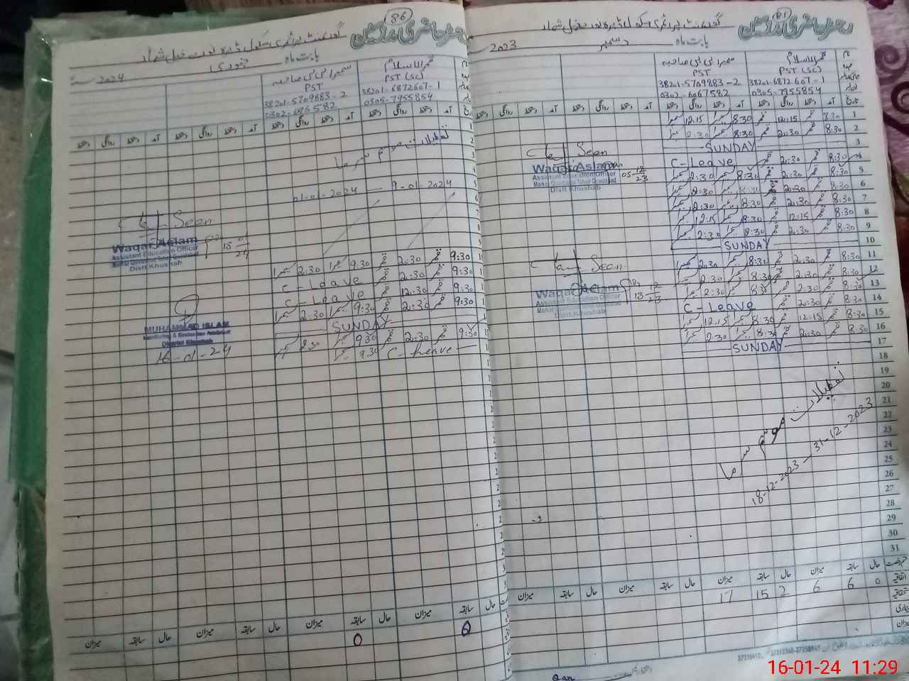 | CNIC | Full Name | Designation | R/C | Absence During Last Calender Month |