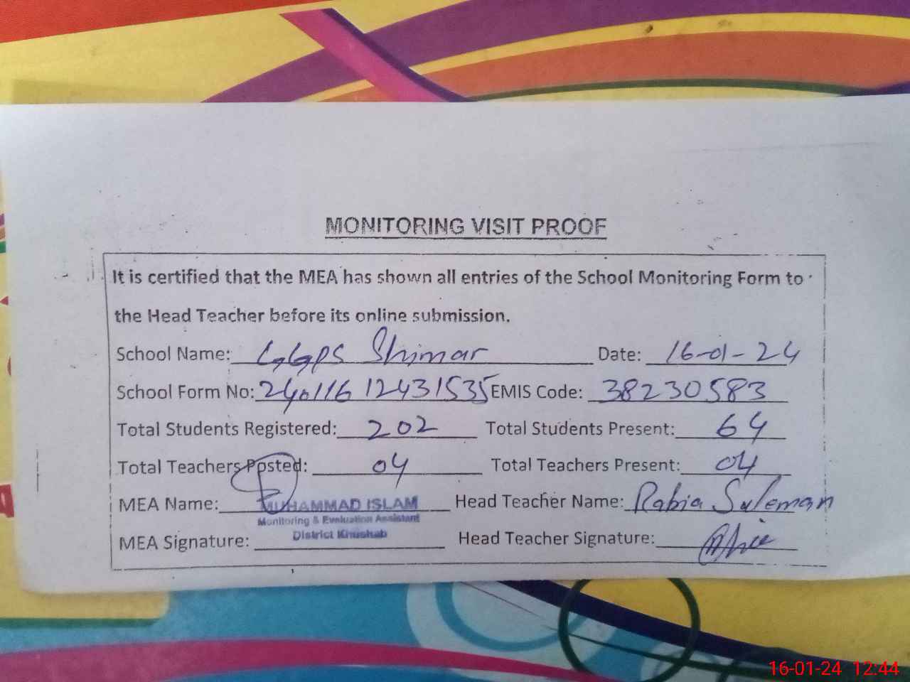 | EMIS Code: 38230583 | Name of School: GGPS SHIMAR | |||