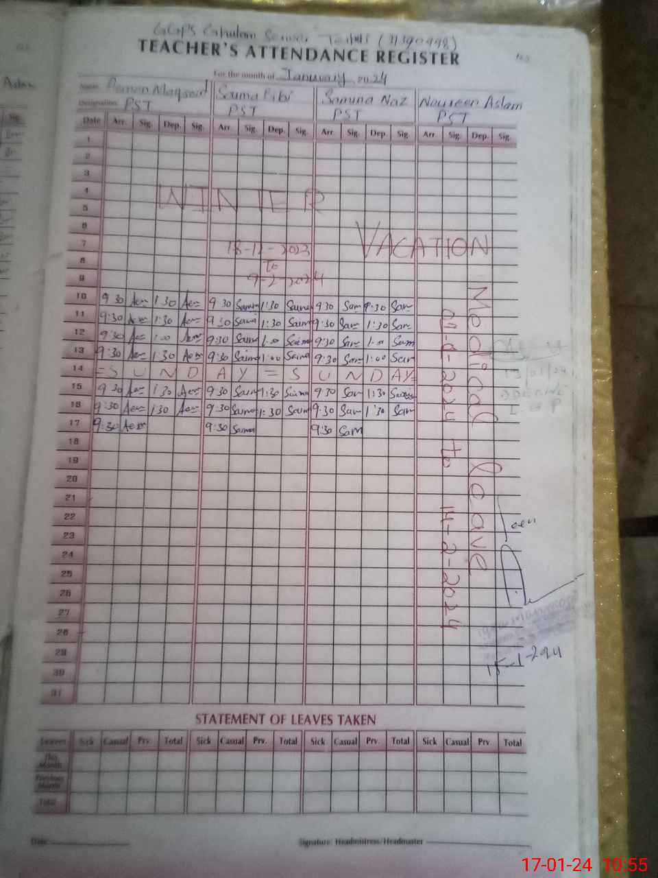 | Name: SA**** BI**** Designation: (School Headmaster's/Headmistress's) PST Phone/Cell Number: 03**** |