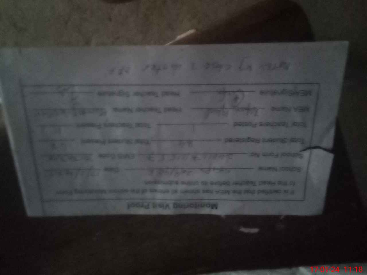 | Attendance Register | Head Teacher | MEA with School | Visit Proof |