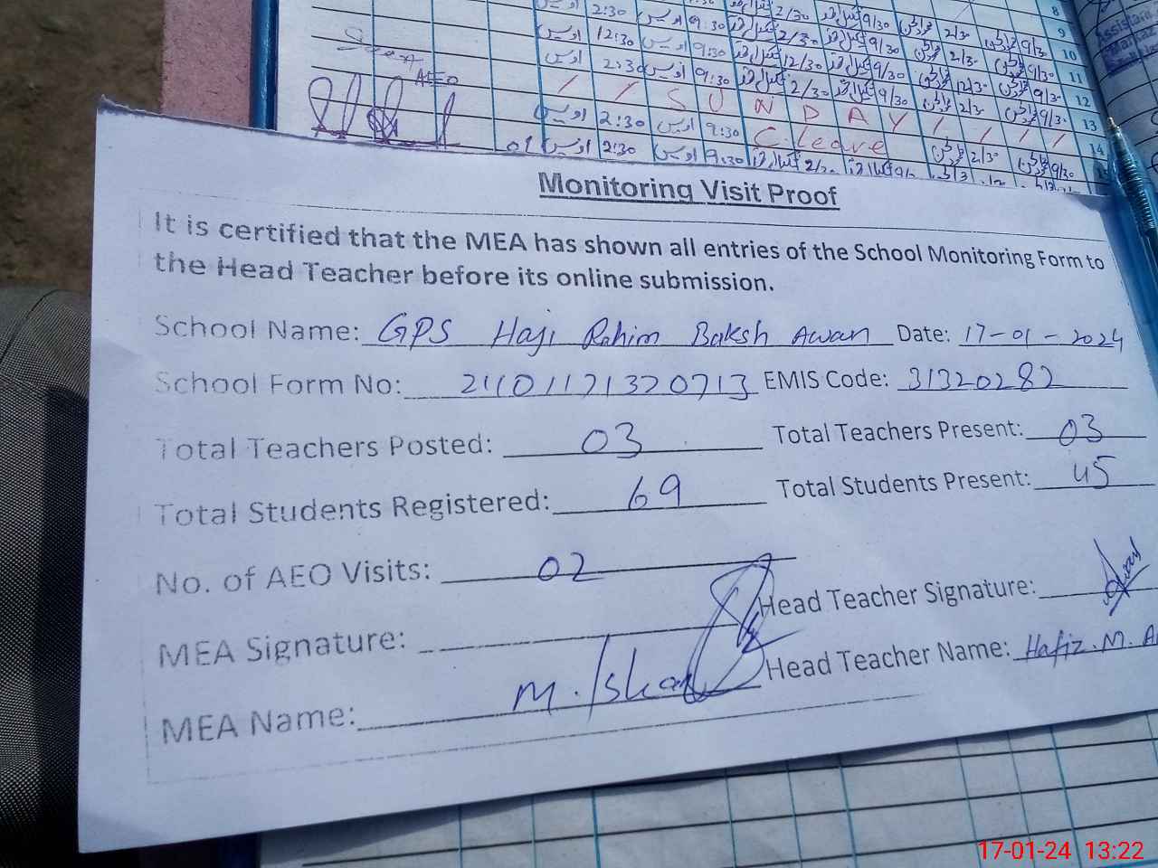 | EMIS Code: 31320282 | Name of School: GPS HAJI RAHIM BAKHASH AWAN | |||