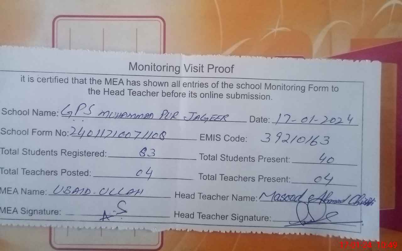 | EMIS Code: 39210163 | Name of School: GPS MUHAMMAD PUR JAGEER PO PAKPATTAN | |||