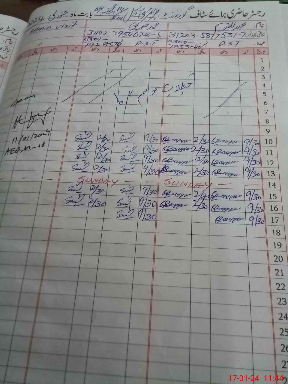 | CNIC | Full Name | Designation | R/C | Absence during last cal. month |