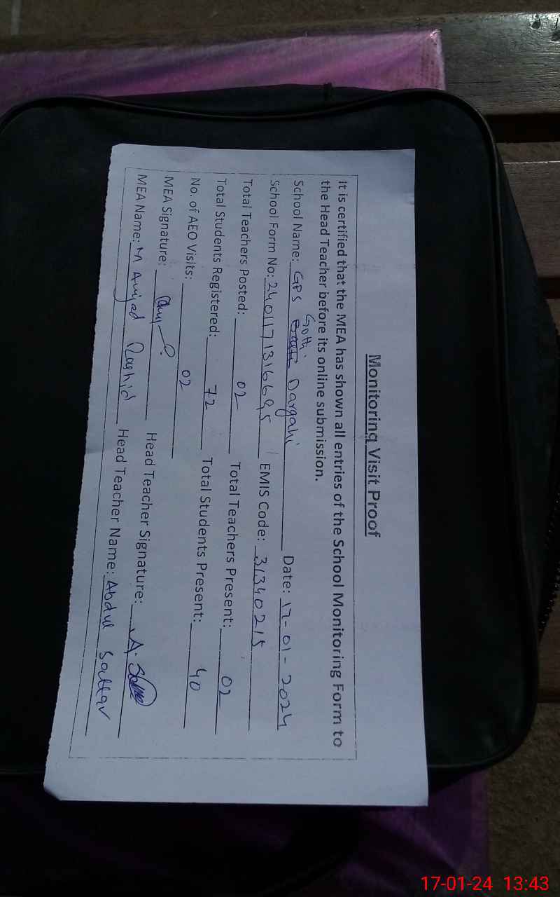 | EMIS Code: 31340215 | Name of School: GPS GOTH DARGAHI | |||