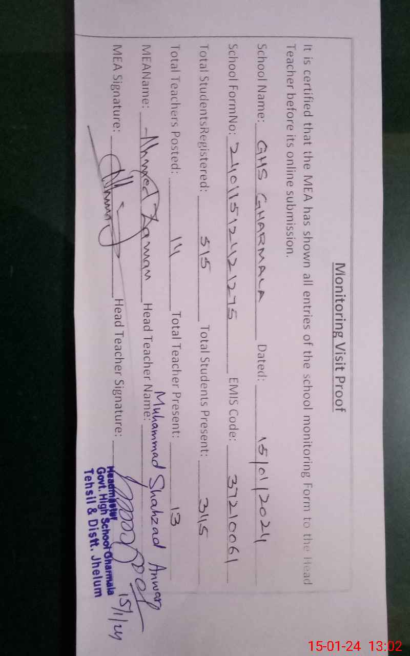 | EMIS Code: 37210061 | Name of School: GHS GHARMALA | |||