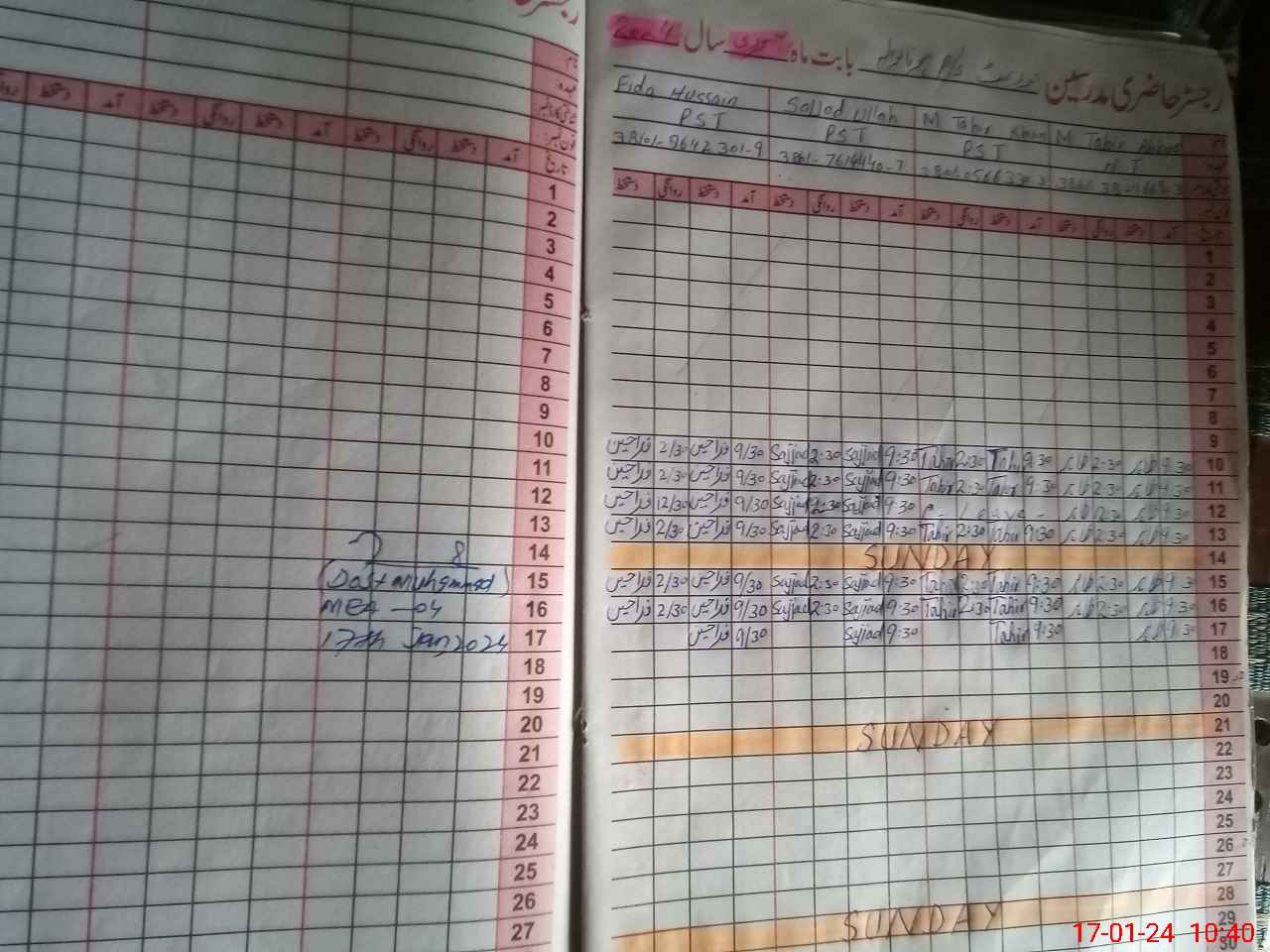 | Name: Mu**** Ta**** Ab**** Designation: (School Headmaster's/Headmistress's) PST Phone/Cell Number: 03**** |