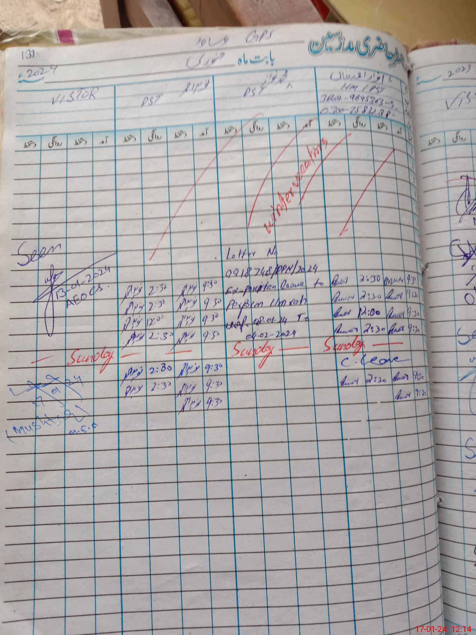 | CNIC | Full Name | Designation | R/C | Absence During Last Calender Month |