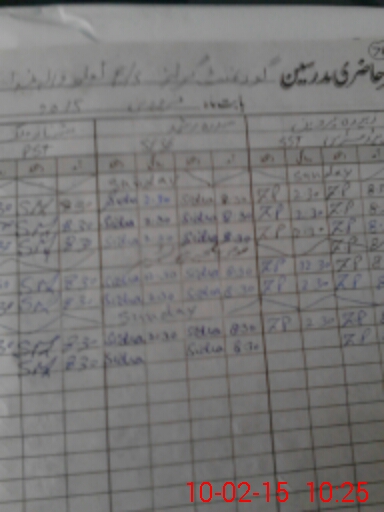 | CNIC | Full Name | Designation | R/C | Absence During Last Calender Month |