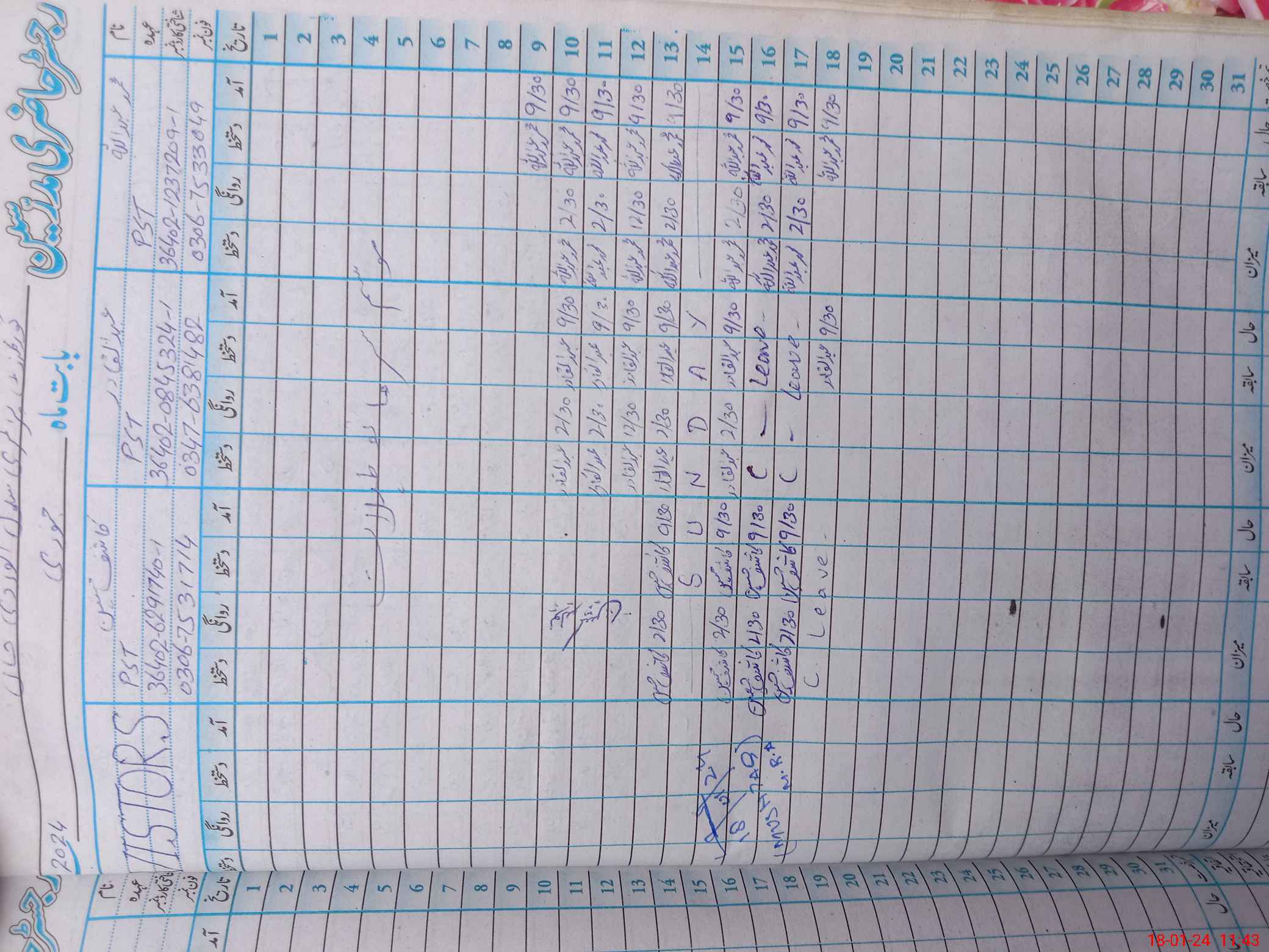 | CNIC | Full Name | Designation | R/C | Absence during last cal. month |