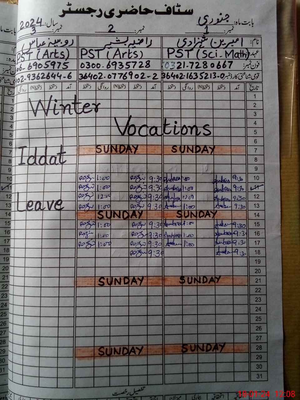 | Name: Ir**** Ka**** Designation: (School Headmaster's/Headmistress's) PST Phone/Cell Number: 03**** |