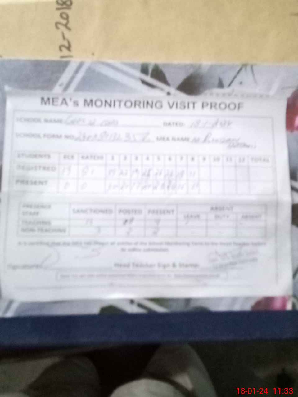 | Attendance Register | Head Teacher | MEA with School | Visit Proof |