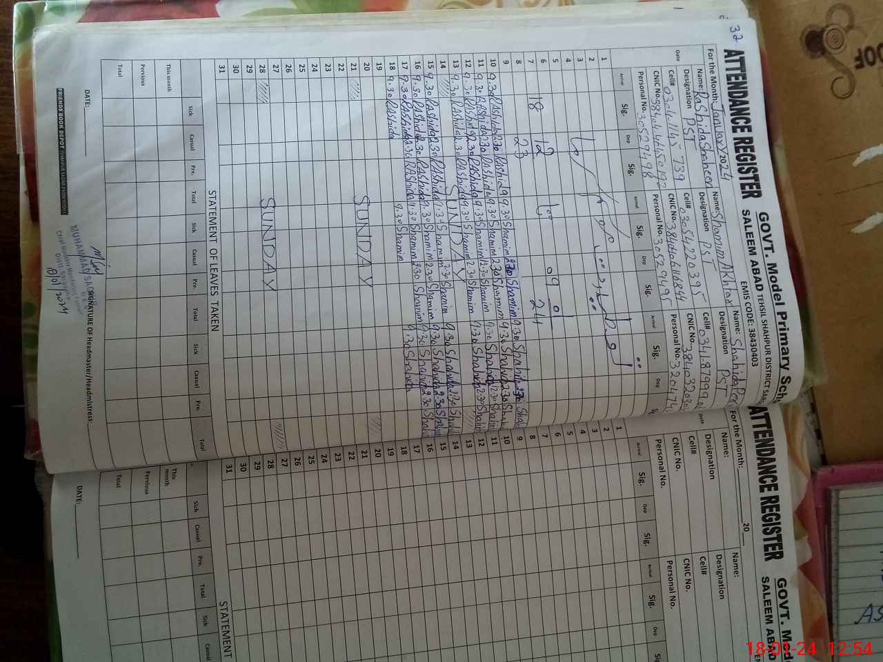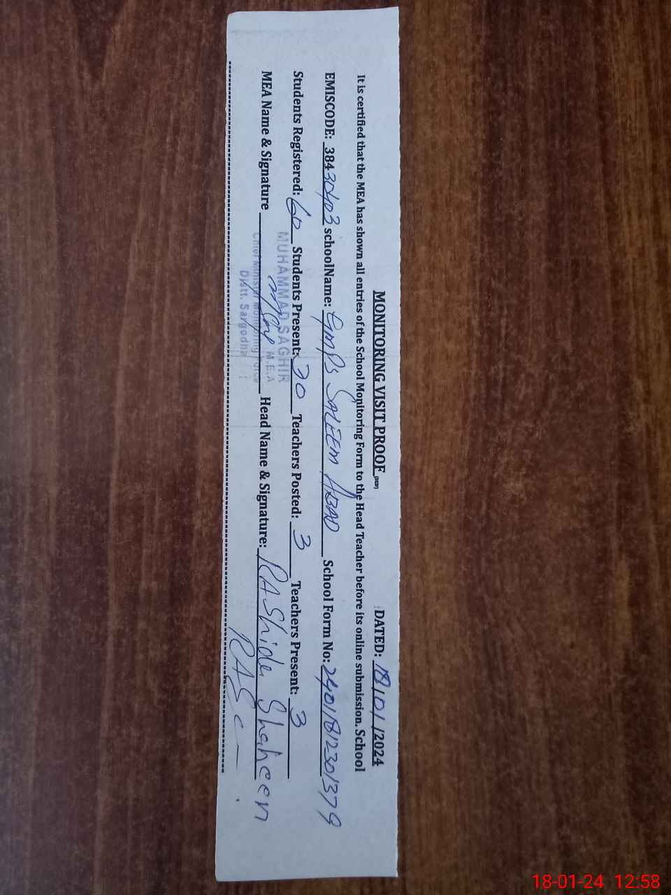 | Name: SH**** PA**** Designation: (School Headmaster's/Headmistress's) PST Phone/Cell Number: 03**** |