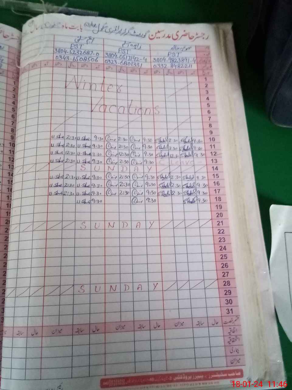 | CNIC | Full Name | Designation | R/C | Absence During Last Calender Month |
