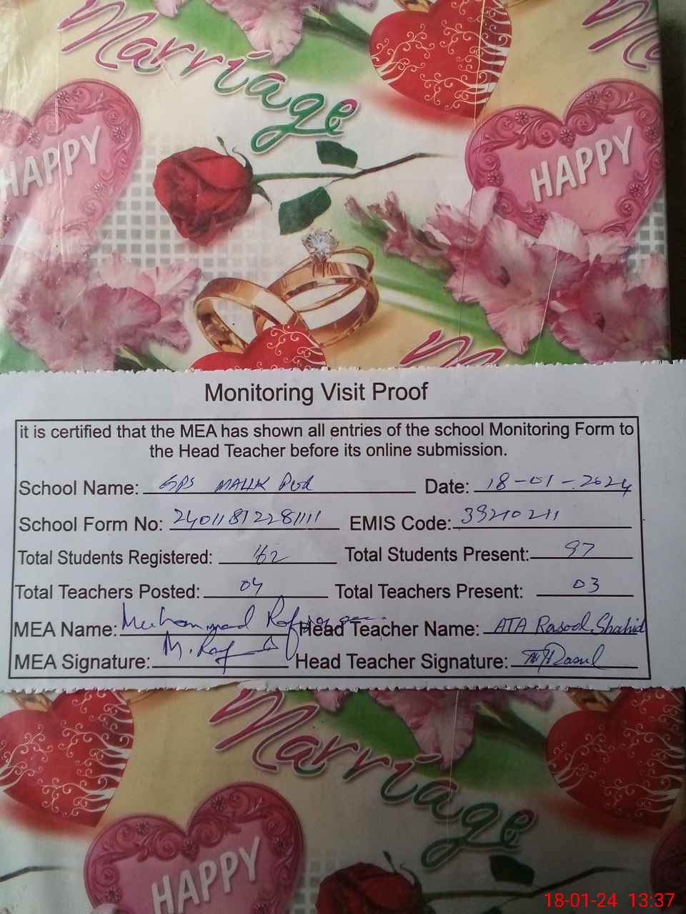 | EMIS Code: 39210211 | Name of School: GPS MALIK PUR PO PAKPATTAN | |||