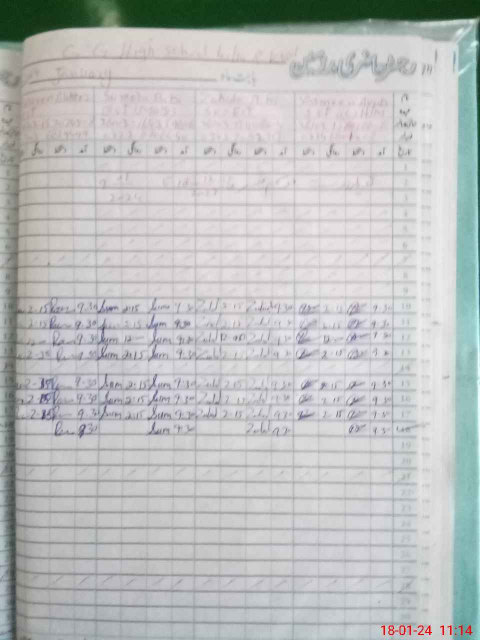 | No. of Students Present - Male | 0 | 0 | 0 | 0 | 0 | 0 | 0 | 0 | 0 | 0 | 0 | 0 | 0 | 0 | ||