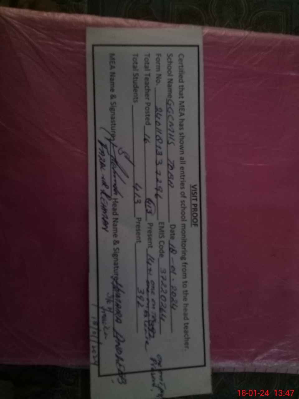 | EMIS Code: 37220264 | Name of School: GGCMHS TOBAH | |||